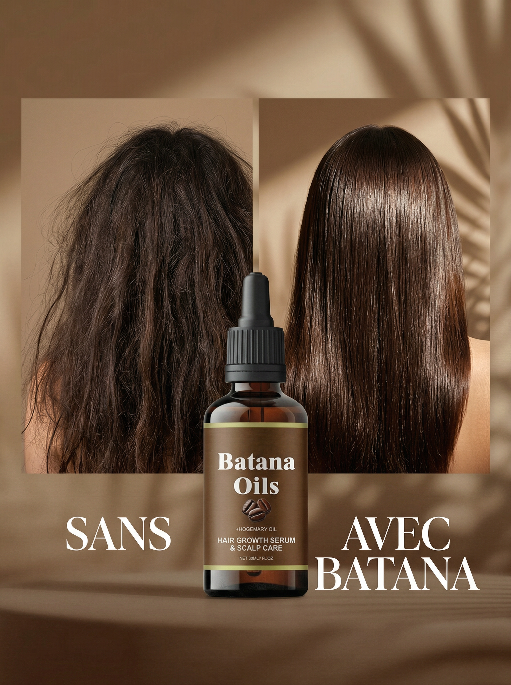 🌿 Huile de Batana (Platthana) : Riche en vitamines, elle répare les dégâts, nourrit en profondeur et réduit la casse de 90%.